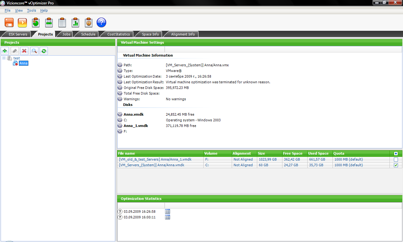 1. В free версии всего можно сделать 2 оптимизации, а потом нужно покупать платную версию. Данные оптимизации, в принципе, для vSphere не очень-то и нужны, в ней при миграции можно решить проблему «свободного места» или использовать vmkfstools (читайте “Типы виртуальных дисков vmdk виртуальных машин на VMware vSphere / ESX 4“).
